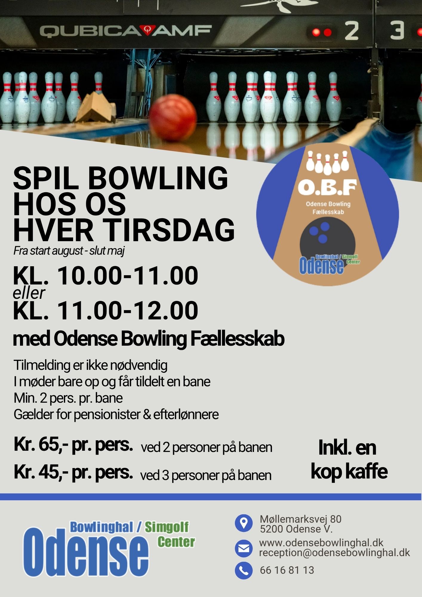 og har du altid godt kunne tænke dig at spille i en klub, så er der mange muligheder i Odense Bowlinghal & Simgolf Center.
