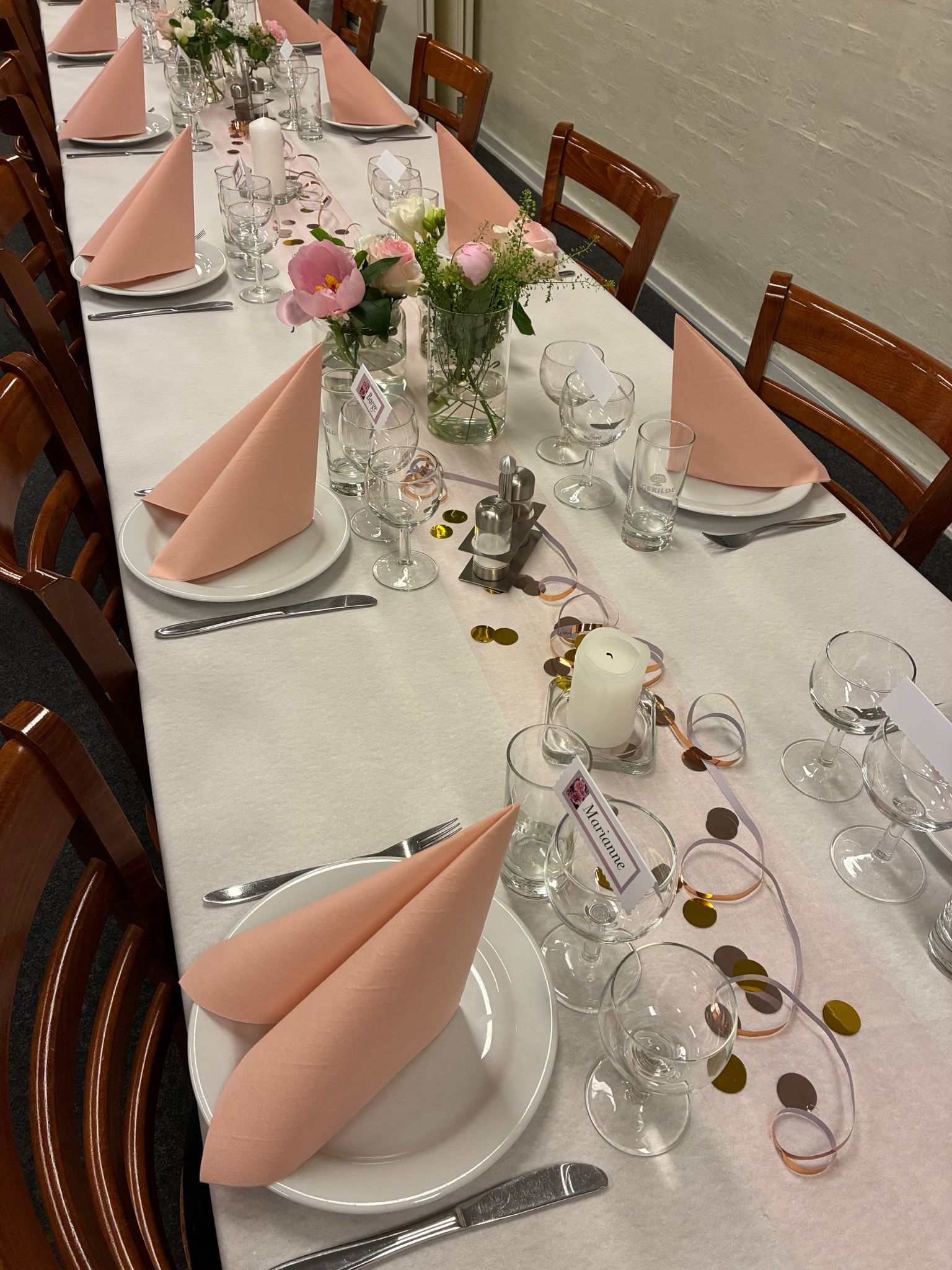 Begge pakker er med festlig dækket bord med hvide duge og serviet efter eget farve-valg